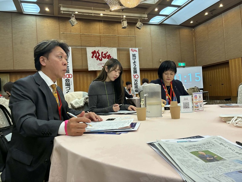 まずはテーブルごとにじっくりと顔を合わせ、90秒の自社PRを通じてお互いの人となりを理解。その後の「スピード大名刺交換会」では、すでに顔と名前が一致した状態で行われたため、より親密で具体的なビジネスに繋がる熱い交流が交わされました。