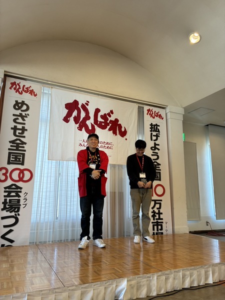 参加者代表挨拶では、はるばる都城会場からお越しいただいた世話人の西元利一様(セルフ脱毛 レオ)にご登壇いただきました 。西元様の音頭による恒例の「一例会一社」「一商談!」の力強い唱和により 、会場全体の士気と一体感が最高潮に達する素晴らしい瞬間となっております。